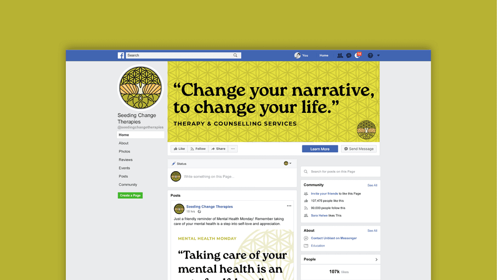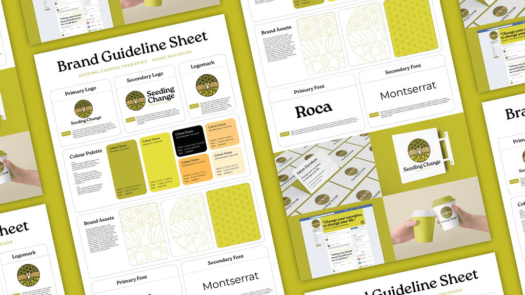 Through meticulous research and close collaboration with Adam, I integrated symbolic elements such as the Flower of Life, a growth tree, and a seed to align with the practice’s name. The final design features a modern mosaic aesthetic, with zen greens and yellows evoking warmth and tranquility. This logo not only captures the essence of Seeding Change Therapies but also creates a welcoming atmosphere for potential clients.
